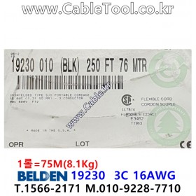 벨덴케이블 BELDEN 19230, 75m, 3C 16AWG, UL Type SJO, CSA FT2, 300V RMS(UL)