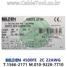 벨덴케이블 BELDEN 4500FE, 100m, 2C 22AWG, Security & Commercial Audio 케이블, LSZH jacket, CPR Eca
