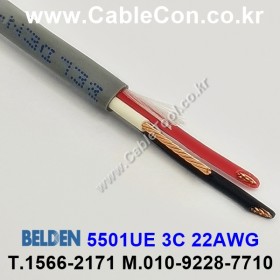 벨덴케이블 BELDEN 5501UE, 300m, 3C 22AWG Security & Commercial Audio Cable, 3 Conductor 22 AWG stranded (7x30) bare copper conductors with polyolefin insulation, Riser, PVC jacket with ripcord.