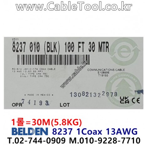 벨덴케이블 8237 BELDEN (30m) > 벨덴케이블 RG8 50옴 동축케이블| 품명 | 상품페이지 참고 |