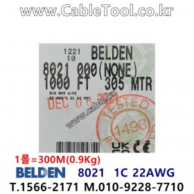 벨덴케이블 BELDEN 8021, 300m, 1C 22AWG, Bus Bar Wire, Tinned Copper, QQ-W-343G