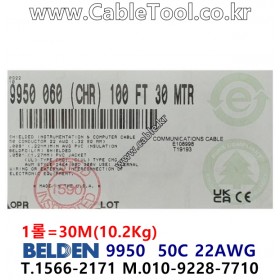 벨덴 BELDEN 9950, 30m, 50C 22AWG, NEC/UL CMG, UL AWM 2464, EIA RS-232